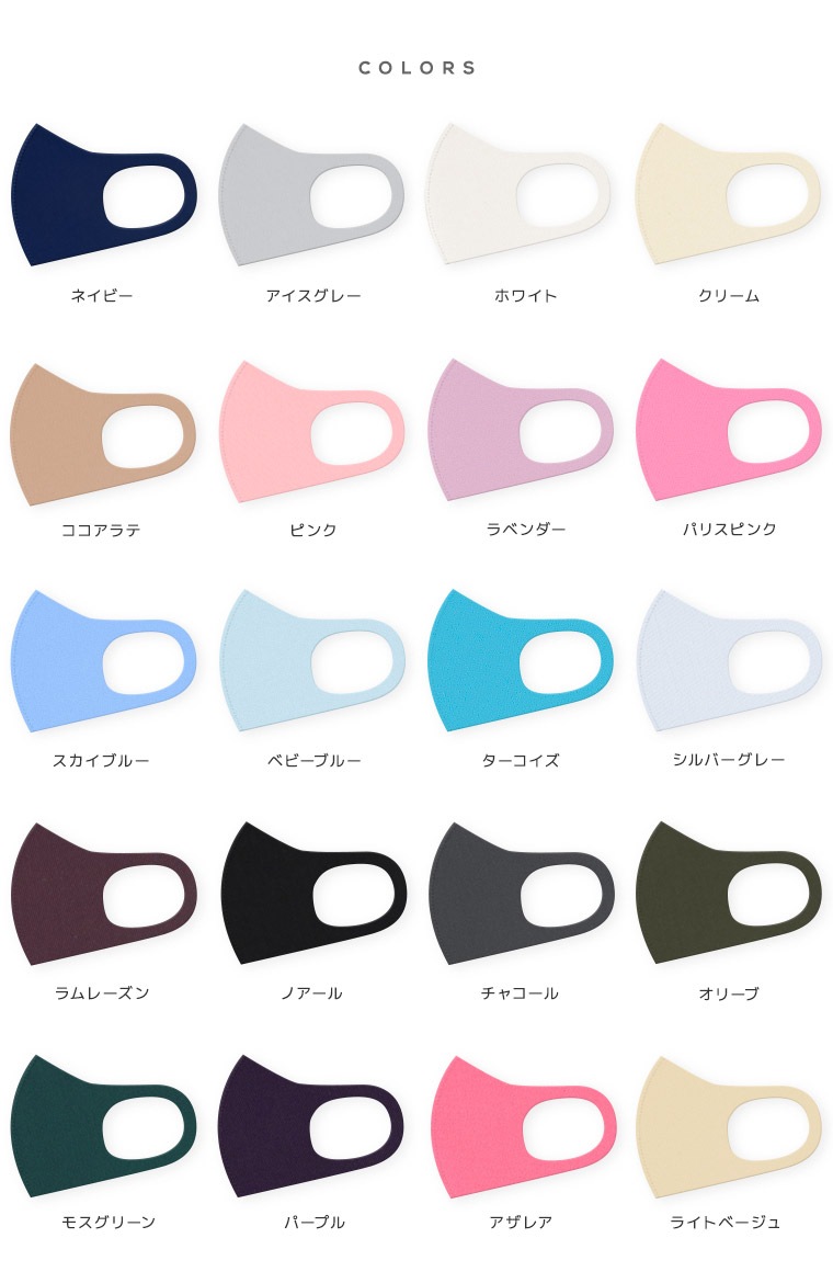 カラー:アイスグレー/ネイビー/ホワイト/ピンク/クリーム/スカイブルー/パリスピンク/ココアラテ/ターコイズ/ベビーブルー/ラベンダー/シルバーグレー/ラムレーズン/ノアール/チャコール/オリーブ/モスグリーン/パープル/アザレア/ライトベージュ