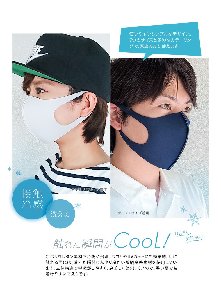 マスク 日本製 洗える 冷感 抗菌 UVカット 3層 ウレタンマスク キッズ 大人 おしゃれ 子供 冷感マスク 小さめ 大きめ ひんやり 接触冷感