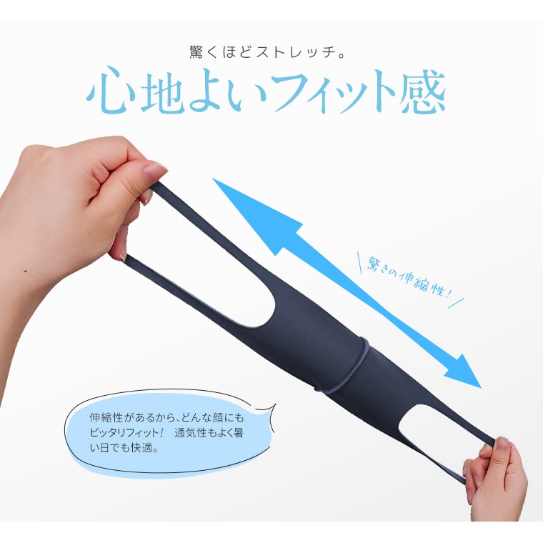 人体に安全な素材で、耳が痛くならない伸縮性を持ち、顔にフィットしても後が残りません。