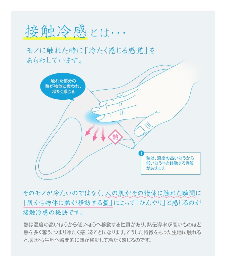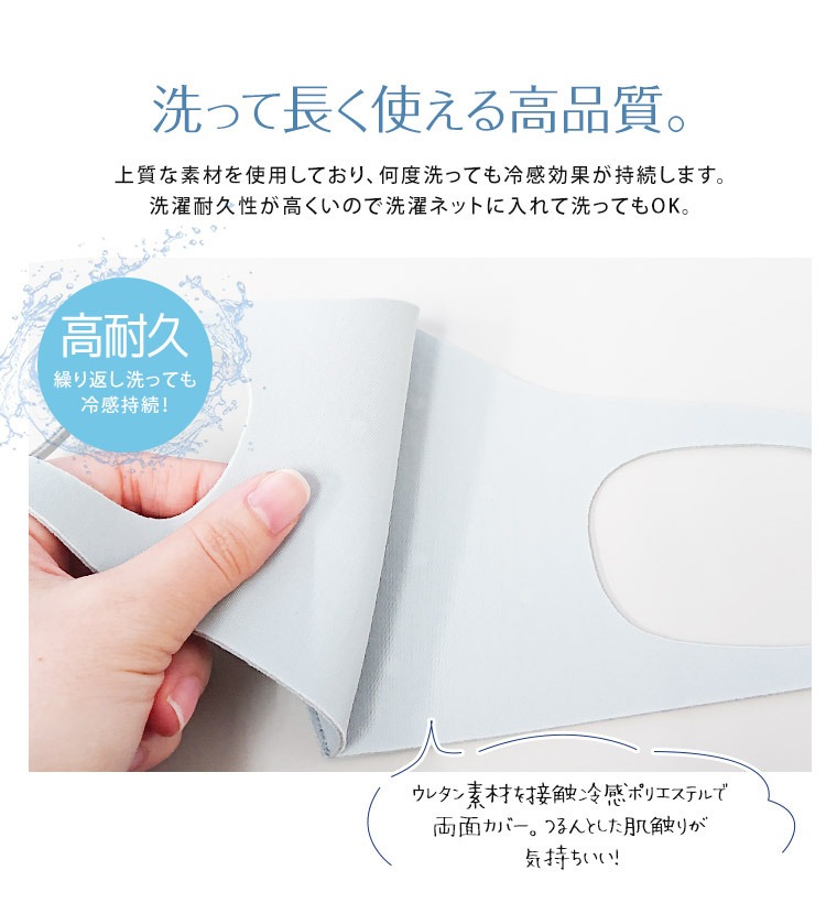通気性が高く、熱がこもらず、接触冷感素材の遮熱効果で、長時間快適に使用できます。