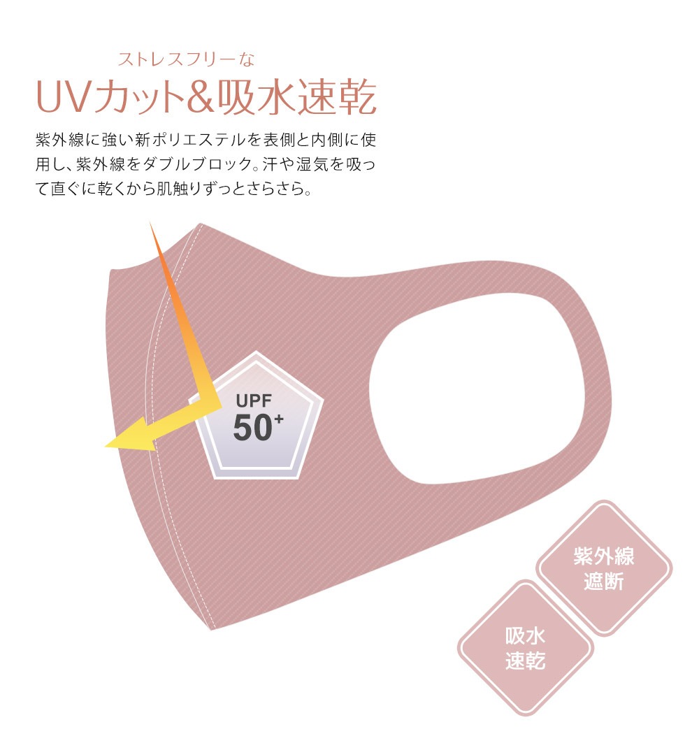 表地と裏地 : 接触冷感 / UVカット / 吸湿速乾 / ストレッチ / 抗ウイルス / 抗菌 / 防臭