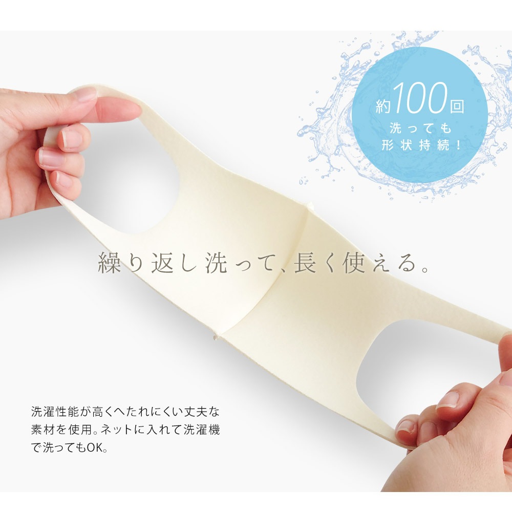 約100回洗っても形状維持(当社比)。洗濯ネットに入れて、洗濯機での洗いもOK。