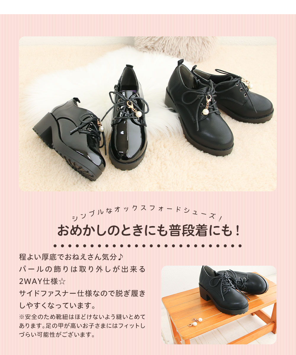 七五三 入学式 卒業式 入園式 卒園式 結婚式 冠婚葬祭 発表会 フォーマル 編み上げ お祝い 入学 入園 女子 チャーム付き サイドジッパー エナメル靴 厚底シューズ 子供靴 女の子 レースアップシューズ キッズ 女の子 オックスフォード シューズ 厚底 サイドファスナー ヒール 2way パール チャーム ハンサムシューズ マニッシュ おしゃれ かわいい 小学生 フォーマル エナメルシューズ ブラック 黒 LS0501