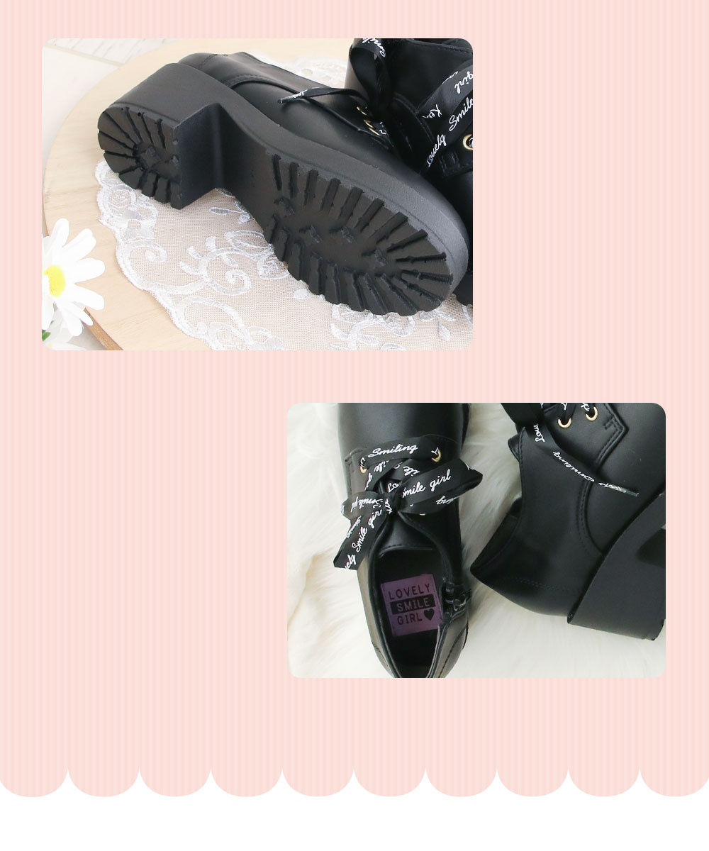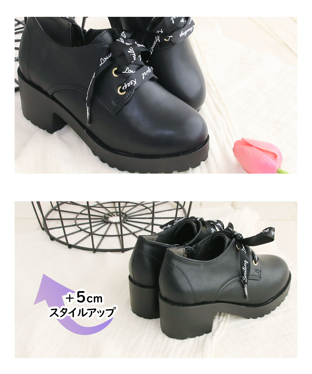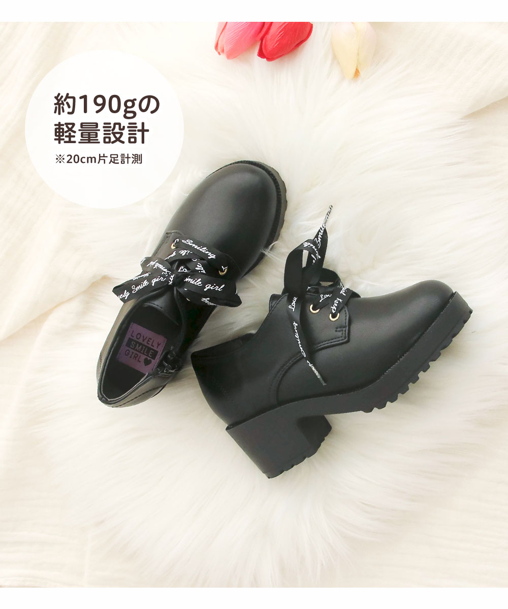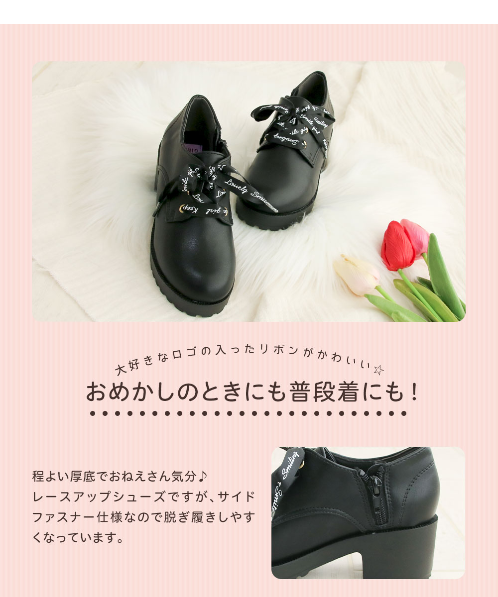 子供靴 女の子 レースアップ キッズ オックスフォードシューズ 厚底 サイドファスナー リボン おしゃれ 小学生 女子 ブラック 黒 LS2503