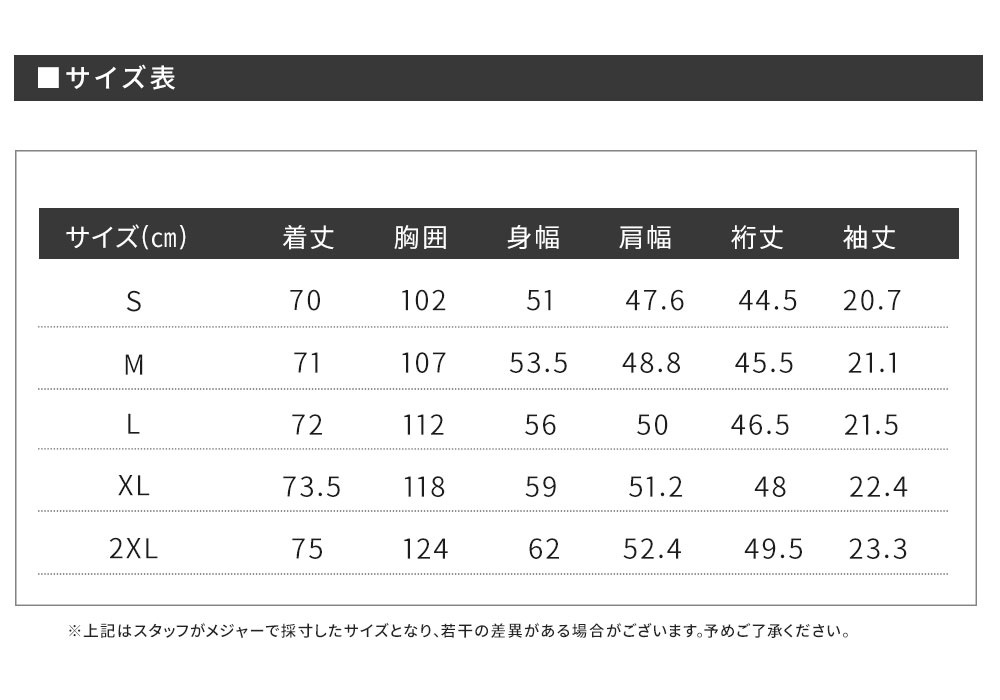 参考サイズ(着丈×胸囲×身幅×肩幅×裄丈×袖丈)