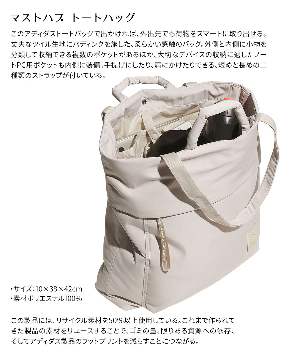 アディダス a4 大容量 マチ付き 肩掛け パソコン 鞄 PC用ポケット マストハブ トートバッグ 黒 ブラック ホワイト adidas KUL13