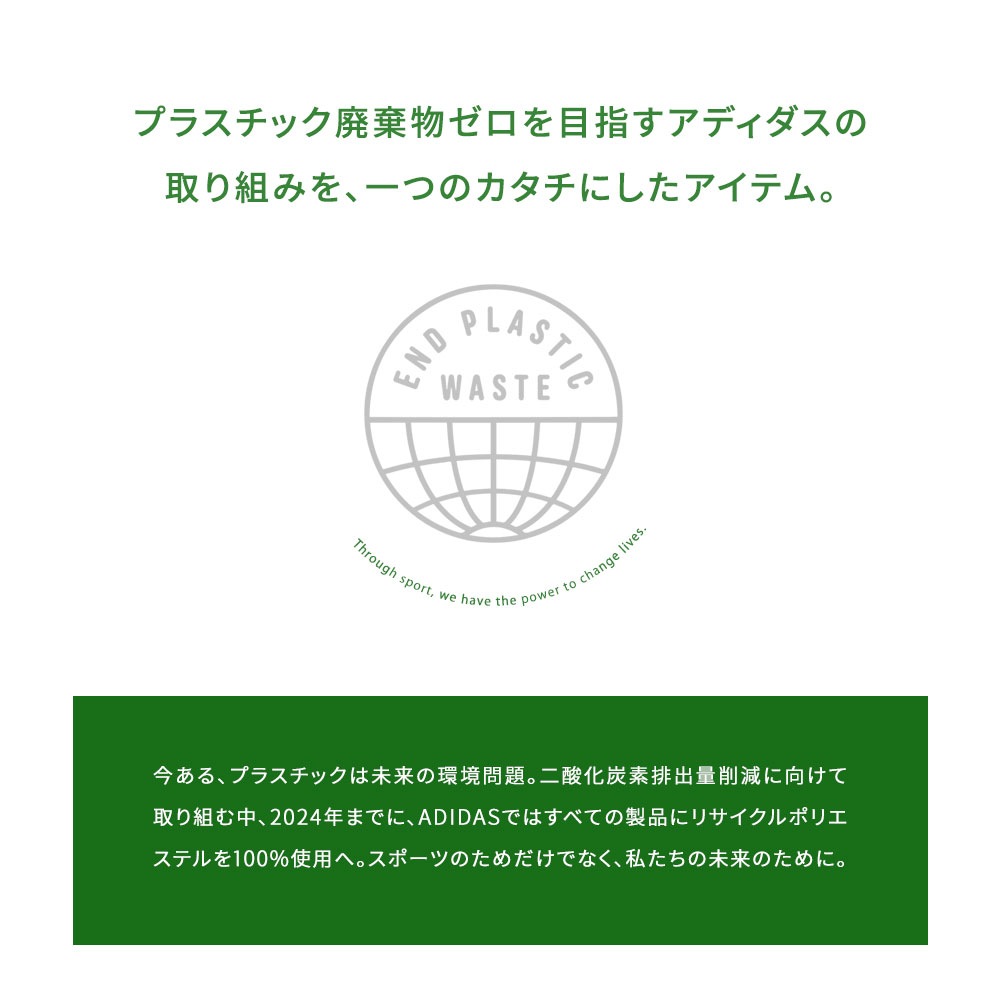 これまで作られてきた製品の素材をリユースすることで、ゴミの量、限りある資源への依存、そしてアディダス製品のフットプリントを減らすことにつながる。