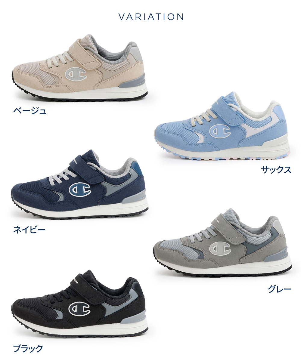 チャンピオン スニーカー キッズ ジュニア シューズ メッシュ 軽量 面ファスナー ブルー ベージュ ネイビー グレー Champion J306