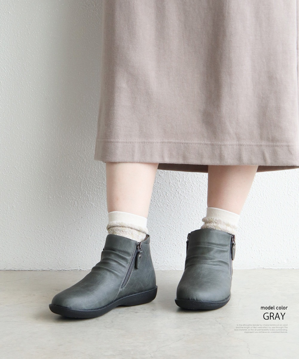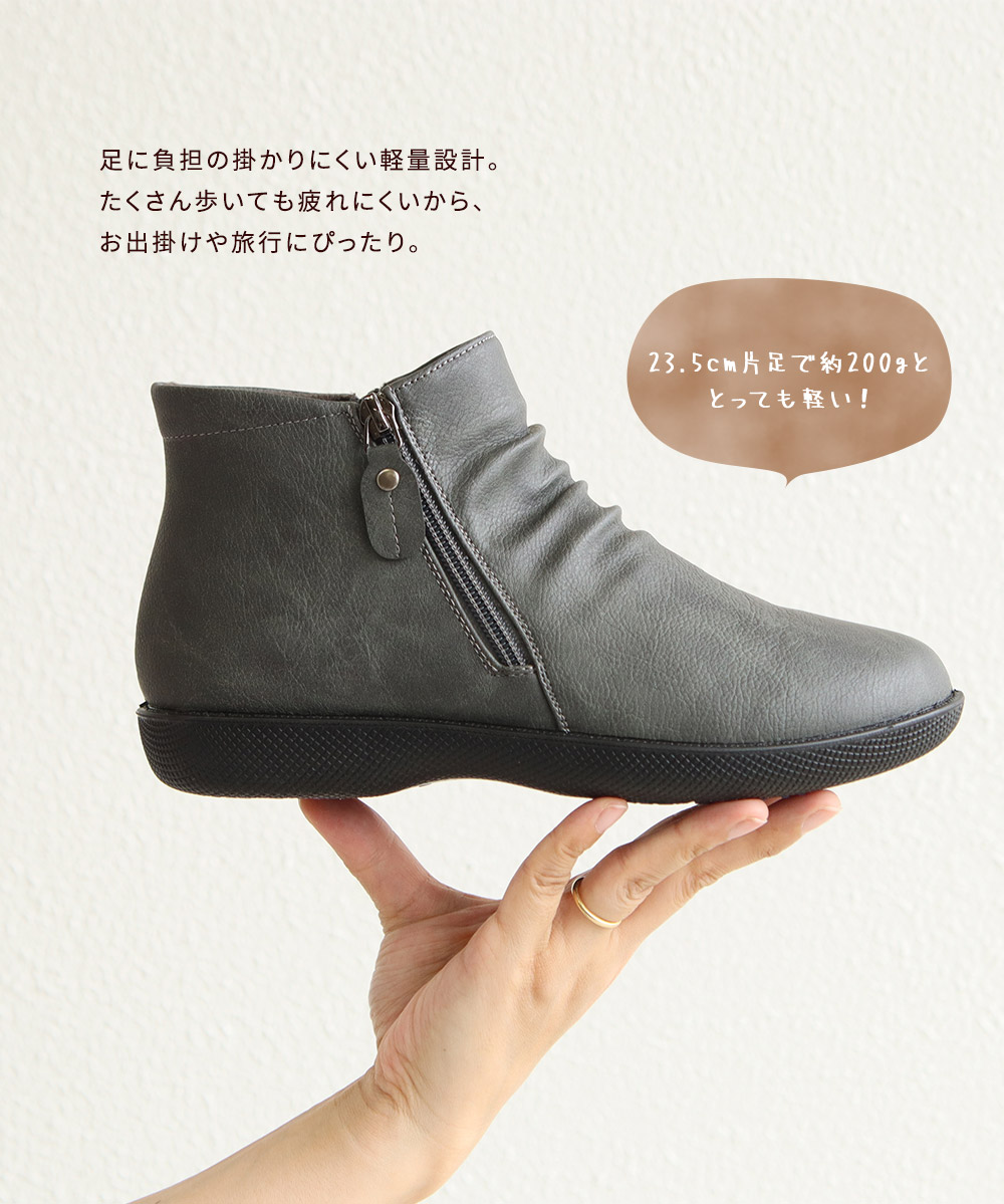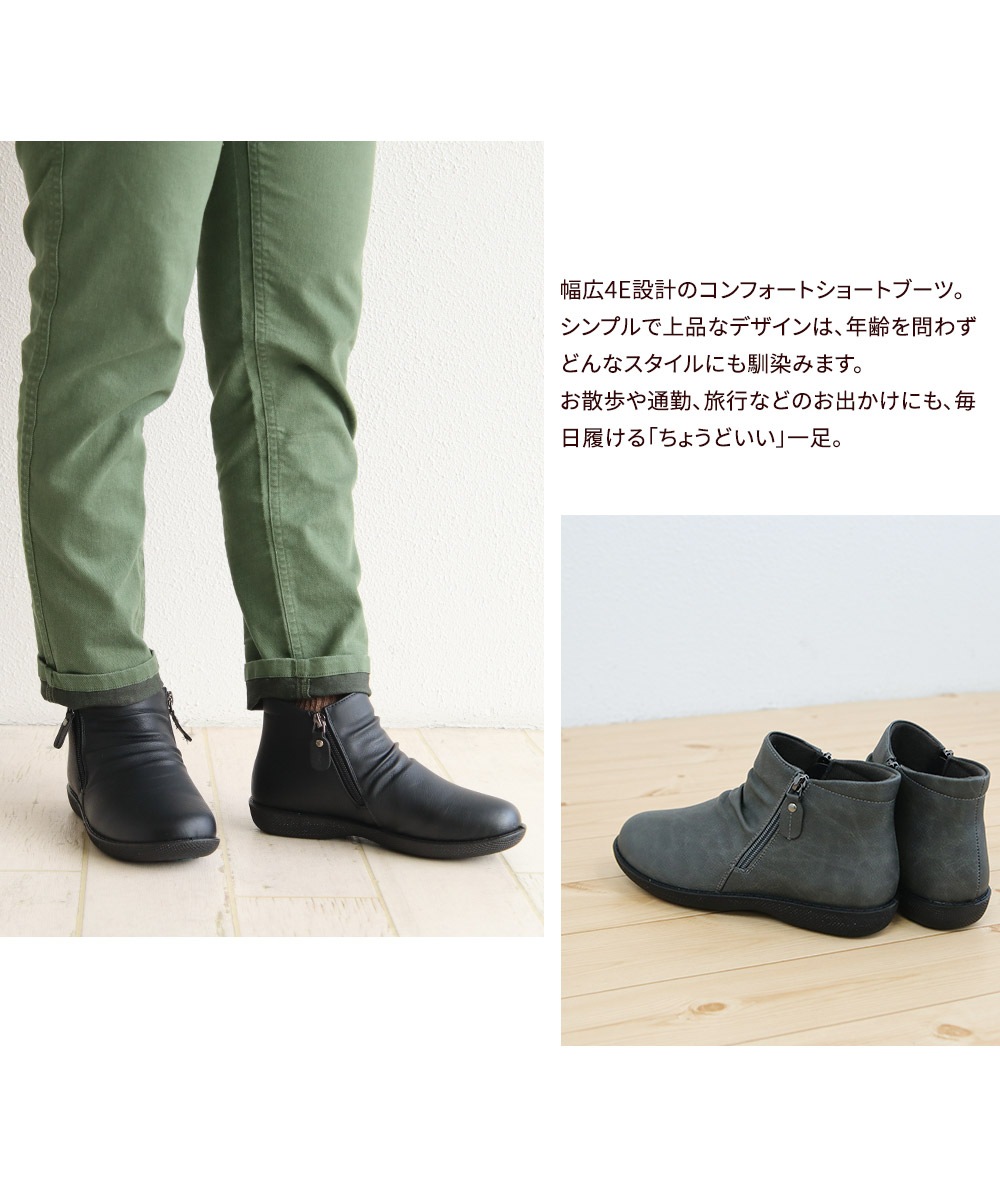 ブーツ ショート レディース 4e 幅広 コンフォートシューズ ファスナー シンプル 女性 母の日 プレゼント 婦人靴 黒 グレー 541-163