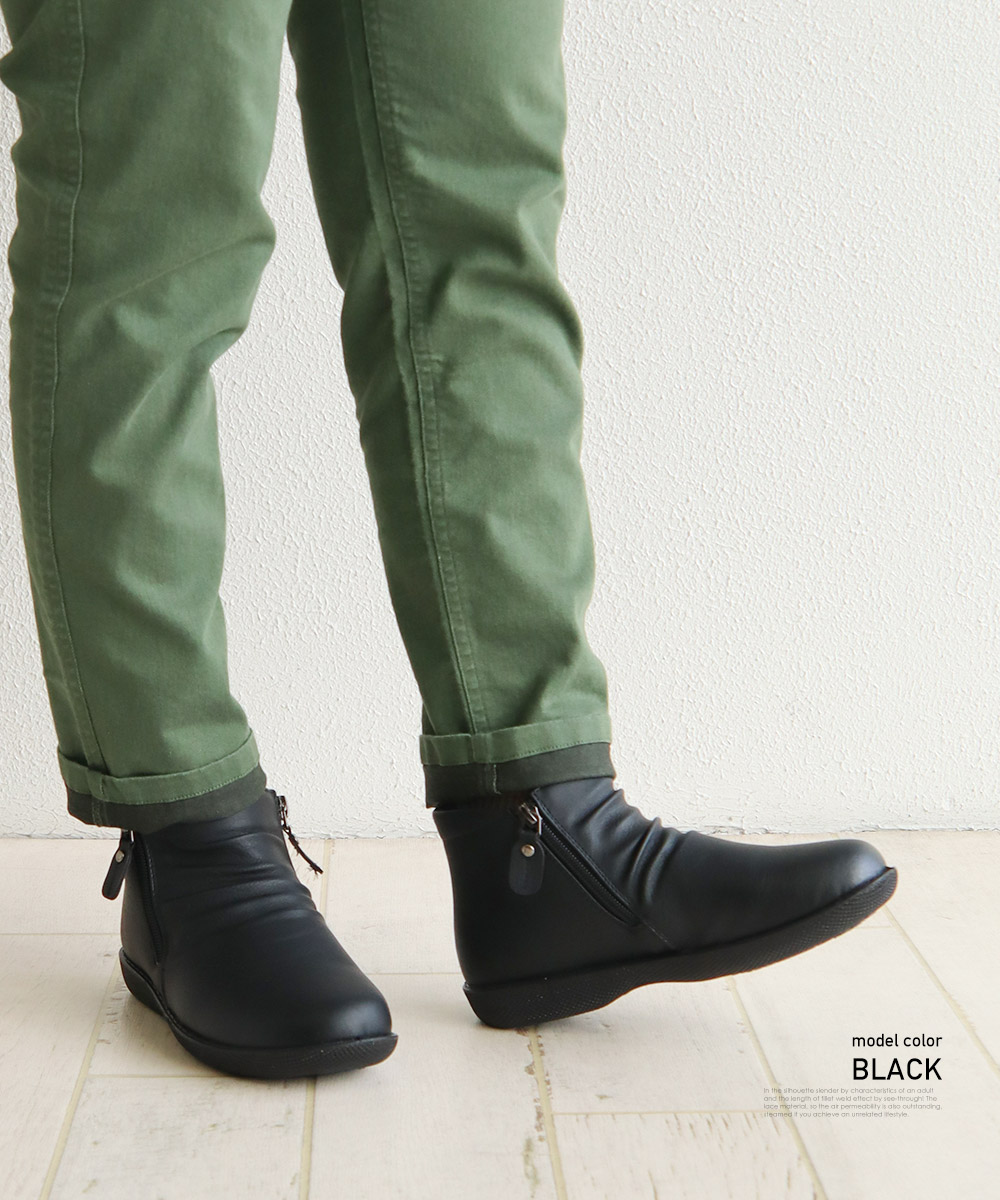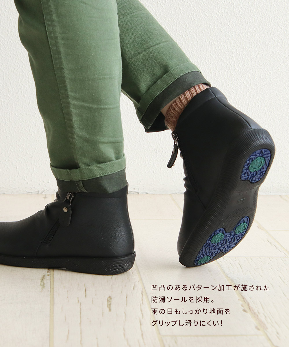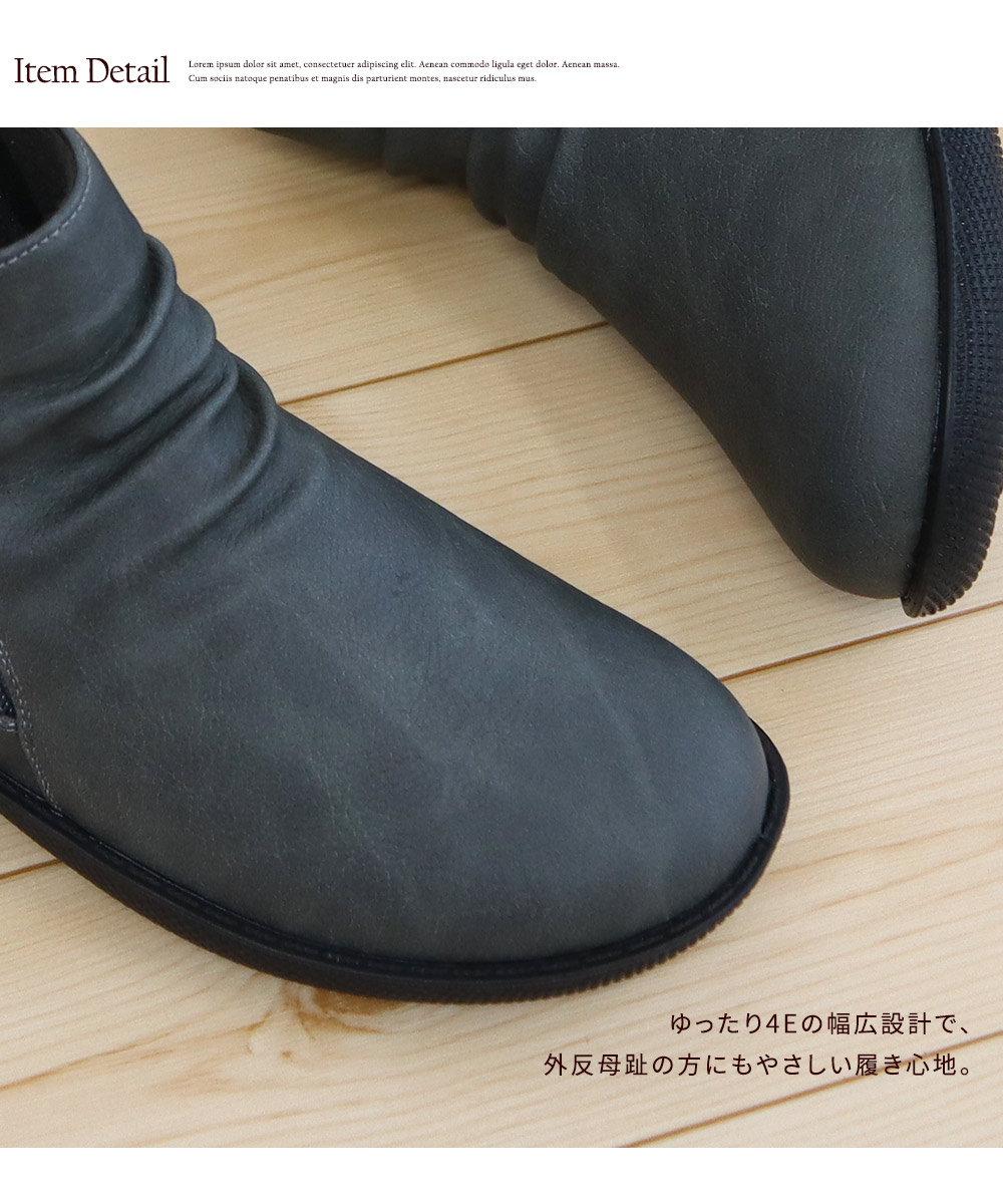 毎日の暮らしを心地よく支える、幅広4E設計のコンフォートショートブーツ。