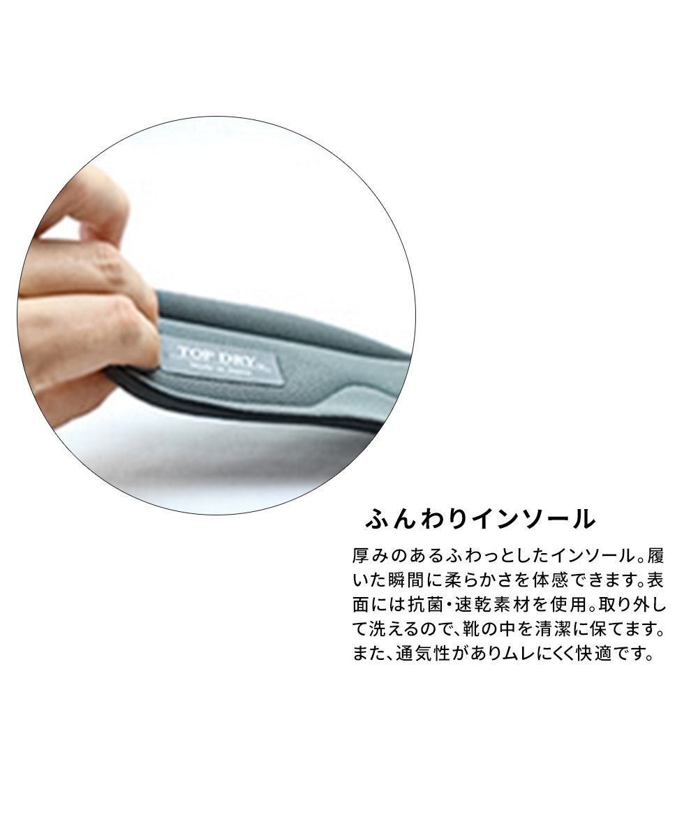 インソールを取り外して洗えるので、靴の中を清潔に保てます。