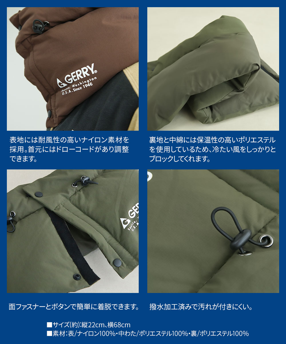 gerry ネック ウォーマー メンズ レディース ダウン もこもこ 男性 女性 防寒 あったか 首元 口元 肩口 アウトドア スキー ウェア バディング n1284 ジェリー