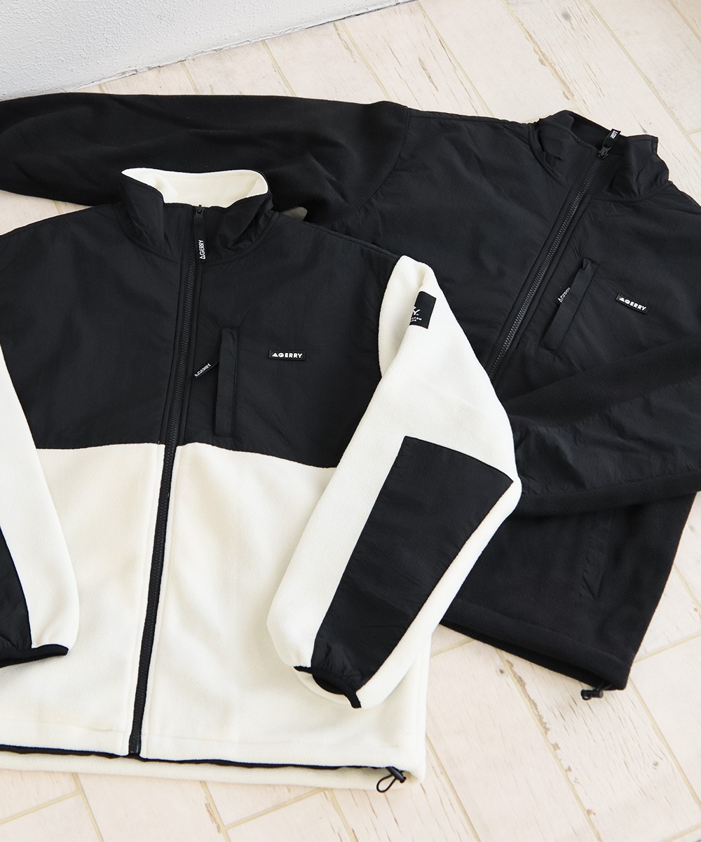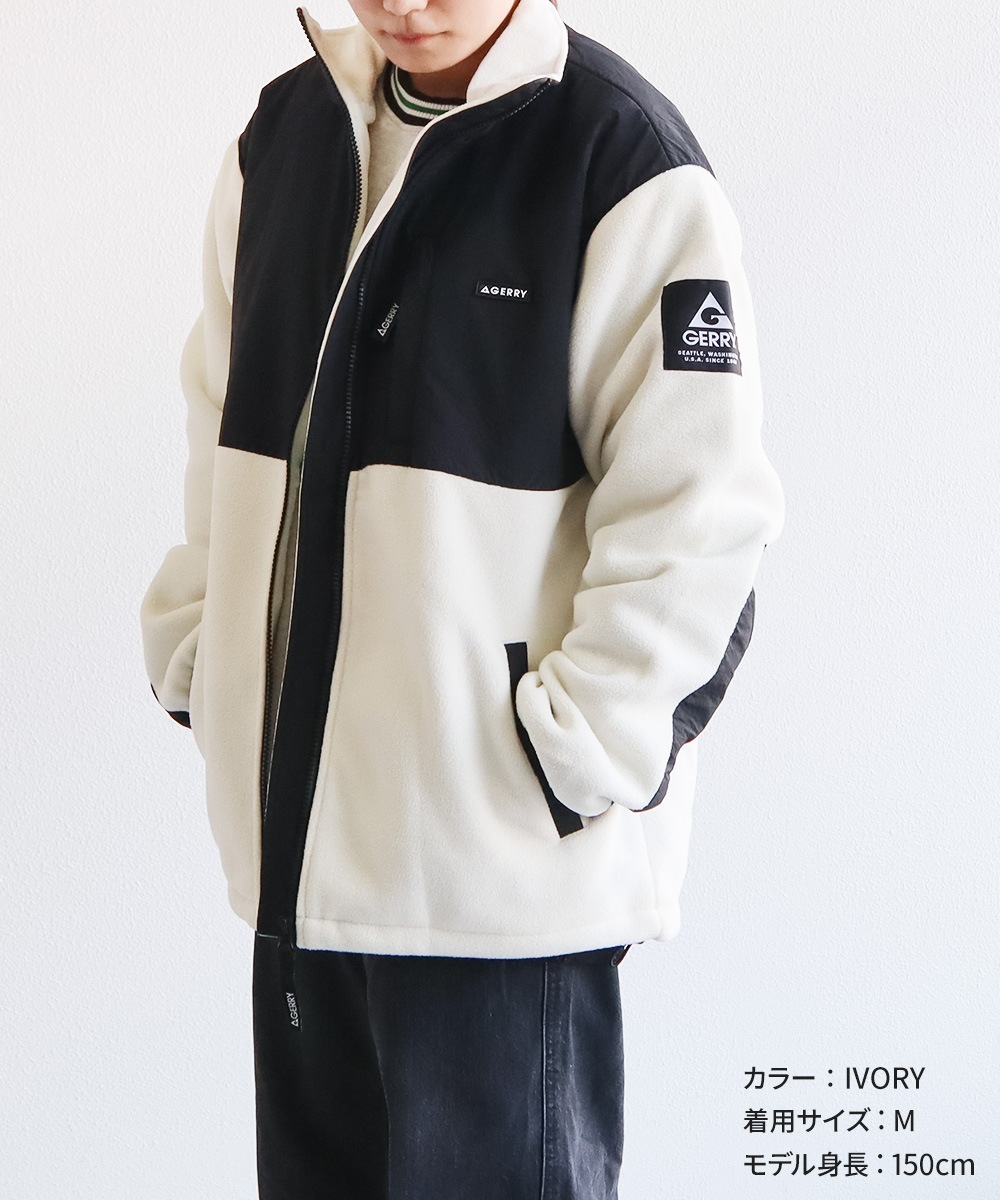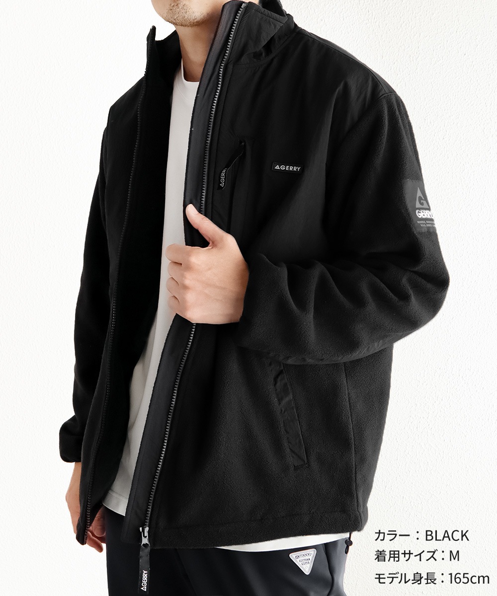 gerry フルジップジャケット メンズ フリース レディース ナイロン切替 総裏 ブルゾン アウター ブランド ロゴ カジュアル 黒 白 ジェリー