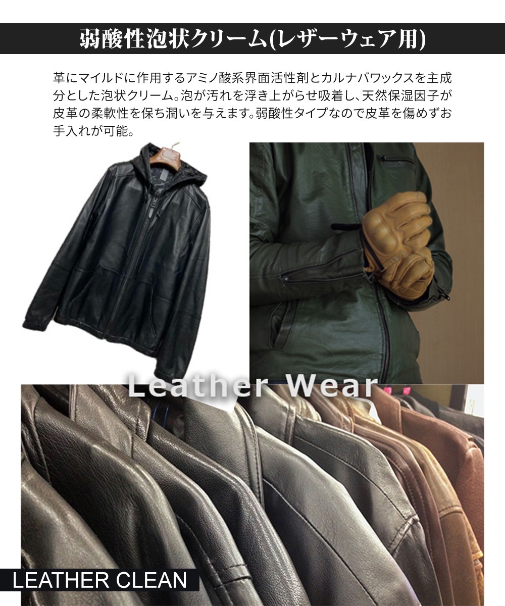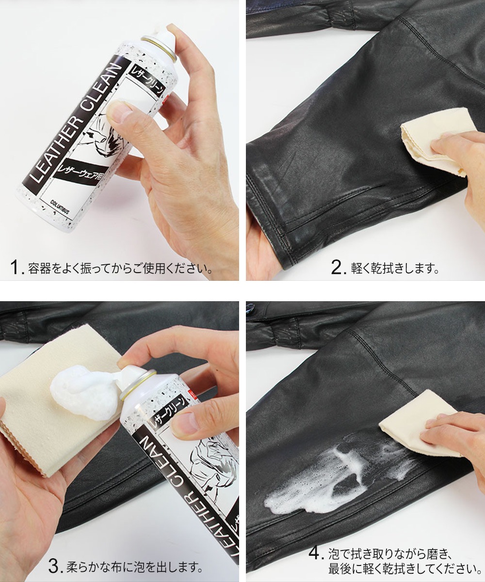 コロンブス レザークリーン 泡状 汚れ落とし 革ジャン レザーウェア 革製品 アミノ酸系界面活性剤 弱酸性 カルナバワックス 日本製 COLUMBUS