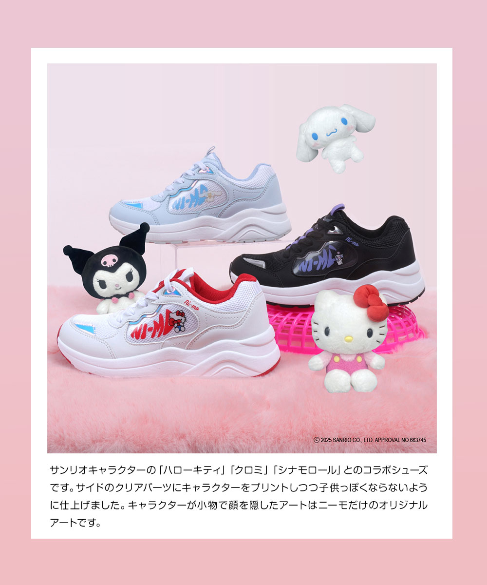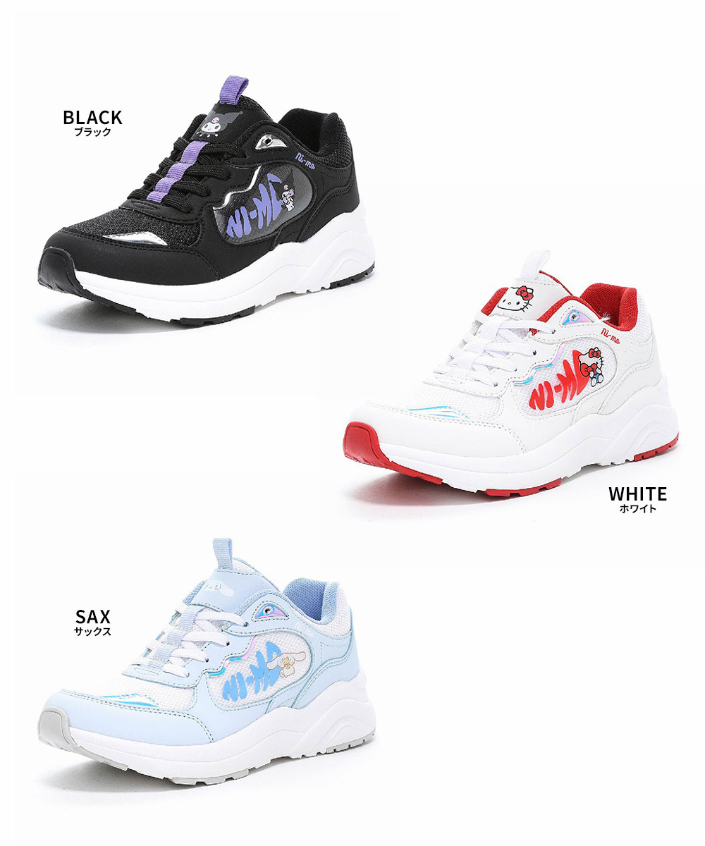 ハローキティ キティちゃん クロミ シナモロール おしゃれ キッズ キッズ靴 シューズ ジュニア プレゼント 人気 入学式 卒園式 卒業式 可愛い 女の子 子ども 子供靴 学生 履きやすい 靴 黒 親子コーデ プレゼント包装 無料 ラッピング ポイント消化 ムーンスター ニーモ スニーカー キッズ 子供 サンリオ 女の子 黒 白 軽量 軽い 洗えるインソール おしゃれ かわいい 歩きやすい 履きやすい ジュニア こども 小学生 高学年 通学 キャラクター 子供靴 靴 シューズ ni-mo ブラック ホワイト サックス NM J152SAN